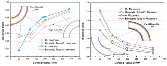 Wall thickness variation of the tube under different bending radii [47].