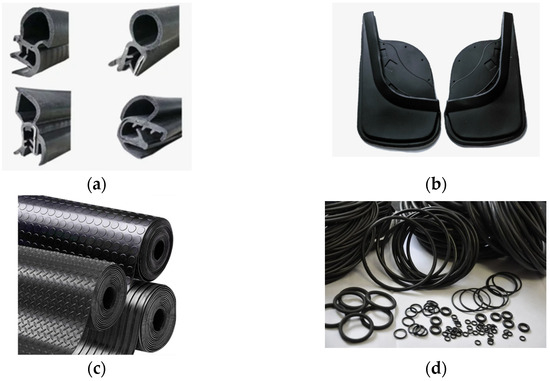 Photo of the RTPs: (a) profiles; (b) mudguards; (c) mats; (d) sealing rings.