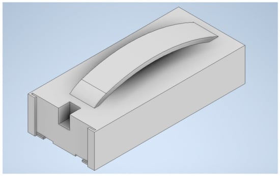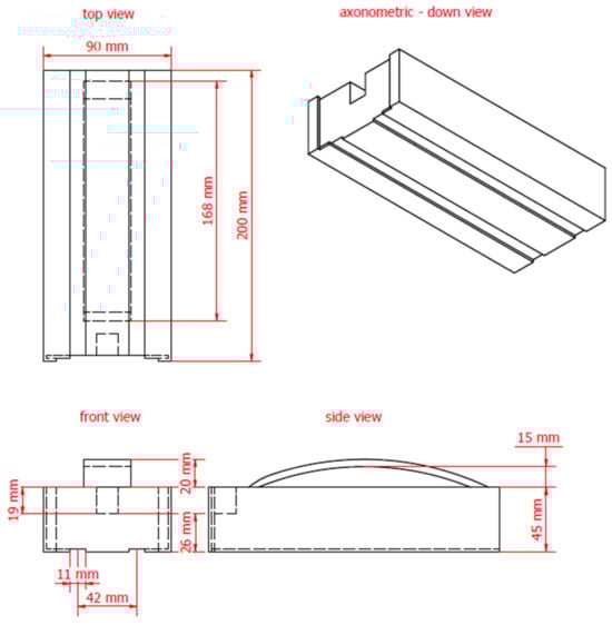 The 3D model of the non-invasive surface sensor was designed using Autodesk Inventor, a software application specifically utilized for sketching and creating 3D models. It can also support engineering calculations, including strength analysis via the finite element method [50]. The structure and dimensions of the model are presented in Figure 1.