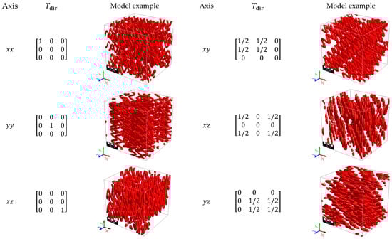 Illustration of fiber model examples directed to the Cartesian coordinate axes.
