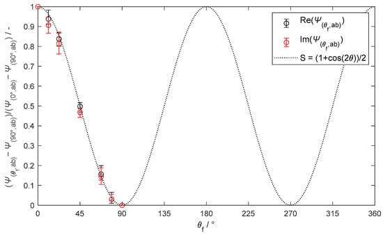 Variation of the normalized difference with . The variation is approximated by the function which reproduces the symmetry every 90°.