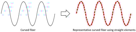 A second approach considers fibers as a collection of interconnected elements, such as straight filaments, to approximate curved fibers, as illustrated in Figure 8. Given that is independent of the size of the straight filament, as long as it is significantly smaller than the electromagnetic wavelength, straight elements arranged to represent a curved fiber could provide a good approximation to estimate their effective permittivity. To ensure accurate representation, the orientation description of the straight filaments should match the same orientation tensor as that of the curved fiber.