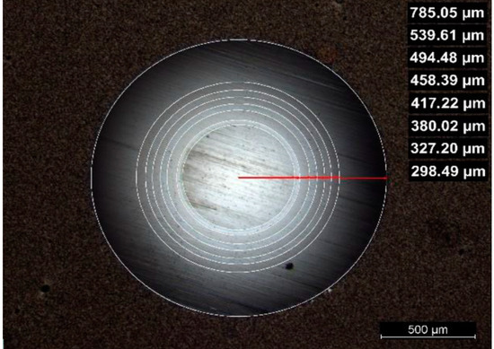 The depths of the fretting marks were measured using a Stylus Profilometer Dektak XT (Bruker), which features a stylus head with nanometric resolution. Since the applied coatings were in the micron range, the depth measurements of the marks were sufficient. The results fall within the accuracy limits of the system, and all the measurements taken are valid. Measurements were recorded from the surface level of the specimen (0 point), with negative values indicating depth. A potential positive value suggests material deposition in the areas of the fretting mark.
