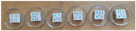 In order to determine the mechanical properties of gypsum and phosphogypsum, cubes of 2 × 2 × 2 cm were formed from paste of a normal consistency. The water/cement ratio and the setting time of the mixture (normal consistency) were determined in accordance with EN 196-3 [20]. The cubes were compressed with the press ELE AutoTest. The compressive strength of phosphogypsum specimens was measured according to EN 196-1 [21] and the modulus of elasticity according to ISO 6784 (1982) [22].
