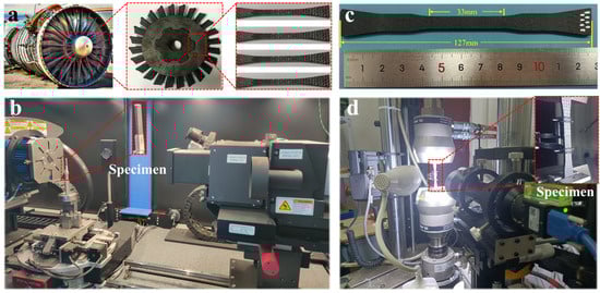 The continuous fiber-reinforced ceramic matrix composites can be divided into C/SiC [10] and SiCf/SiC [11]. Nevertheless, like all carbonaceous materials, carbon fibers exhibit poor high-temperature oxidation resistance [12,13]. Therefore, SiCf/SiC composites are the primary materials in turbine discs. However, SiCf/SiC composites differ from metallic materials in their stiffness and strength characteristics due to the influence of the braiding process, which is markedly anisotropic [14,15,16]. The damage behavior of SiCf/SiC composite structures is currently evaluated utilizing tensile [17,18,19], compression [20,21], and shear tests [22,23]. However, evaluating the anisotropic properties of SiCf/SiC composites through experimental tests alone is costly in terms of raw materials and time, and it also increases the iteration cycle and development cost of new turbine disc structures.