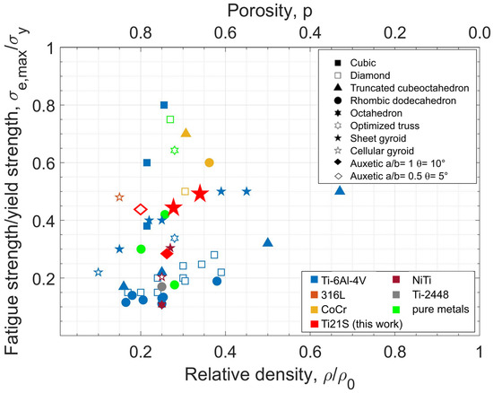 - Yavari, S.A.; Ahmadi, S.M.; Wauthle, R.; Pouran, B.; Schrooten, J.; Weinans, H.; Zadpoor, A.A. Relationship between unit cell type and porosity and the fatigue behavior of selective laser melted meta-biomaterials. J. Mech. Behav. Biomed. Mater. 2015, 43, 91–100. [Google Scholar] [CrossRef] [PubMed]