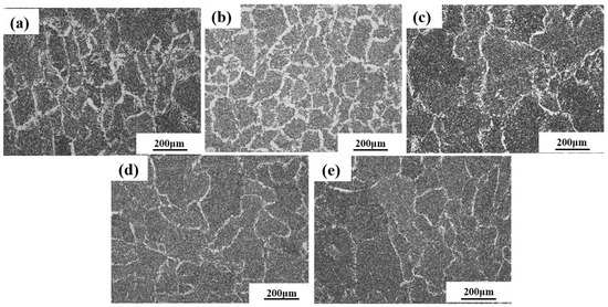 Microstructure of 1#–5# weld metal at 100 times (a–e), respectively.