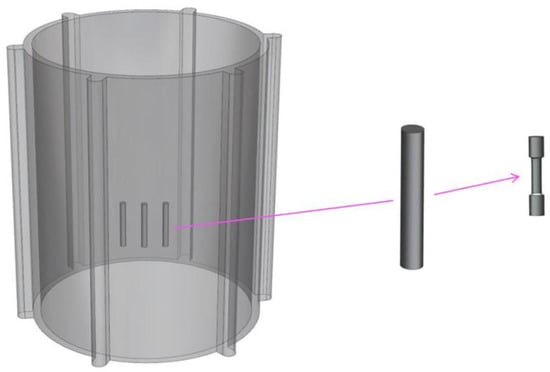 The microstructure of the samples treated in Table 2 was examined using transmission electron microscopy (TEM) (Shanghai, China). TEM samples were prepared by extracting a small part of the sample (the shaded area shown in Figure 3), grinding it to a thickness of 80 μm, electropolishing with a double-jet system in a solution of 30%HNO3 + 70%CH3OH (China), and finally conducting ion thinning. The microstructure was then observed under the transmission electron microscope. Its instruments are from the University of Science and Technology Beijing (Beijing, China).