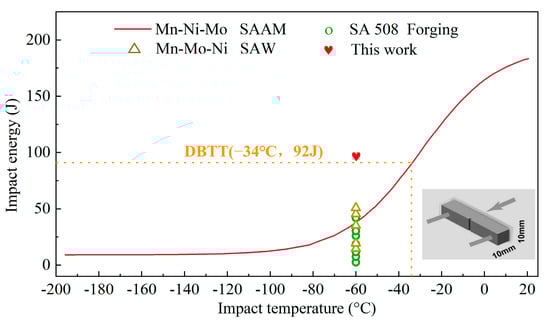 Impact toughness of the Mn-Ni-Mo alloy by SAAM, SAW, and forging [,,,,].