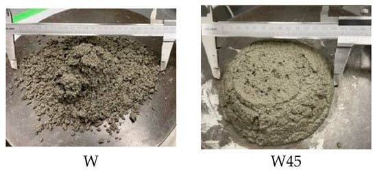Previous literature has used RHA with particle sizes up to 75 μm, which often led to increased formulation complexities. However, the present study used RHA with particle sizes of 46 μm or less and demonstrated improved fluidity [31]. Additionally, as shown in Figure 3, the particle size control ruptured the RHA pores.