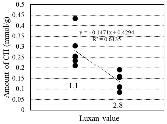 Relationship between CH amount and Luxan value.