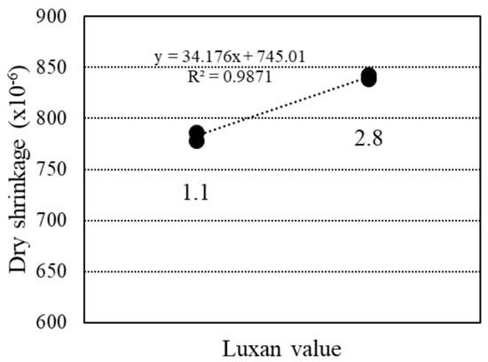 Relationship between dry shrinkage and Luxan value.