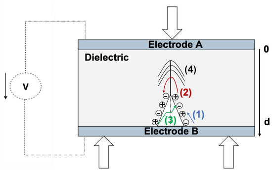 - Dreyfus, G.; Lewiner, J. Electric Fields and Currents due to Excess Charges and Dipoles in Insulators. Phys. Rev. B 1973, 8, 3032–3036. [Google Scholar] [CrossRef]