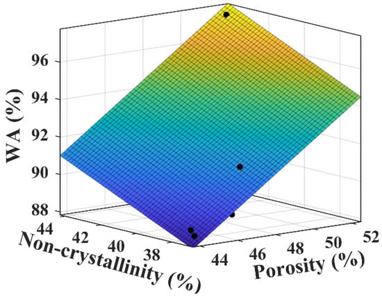 Correlation analysis between water absorption, porosity, and non-crystallinity.