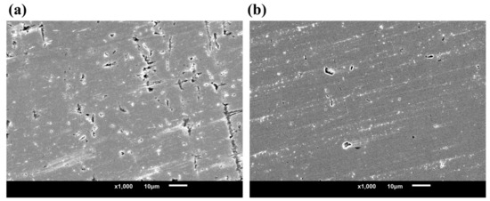 SEM (a) TC4 surface; (b) 304 surface.