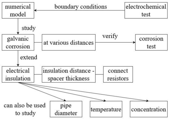 It is crucial to promptly identify the relationship between insulation properties and corrosion behavior and to monitor the electrical insulation between dissimilar metals, especially in real-world environments where corrosion sites extend beyond pipe joints. The corrosion phenomenon is challenging to reproduce, so this model was developed to address the issue and to study the impact of relevant factors. This paper investigates the effect of electrical insulation properties on corrosion behavior, including self-corrosion and galvanic corrosion, by modeling electrical insulation control and corrosion behavior, which can provide a foundation for effective electrical insulation control.