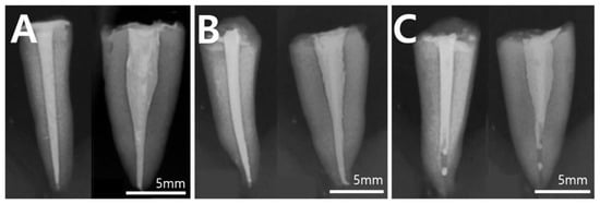 - An, H.J.; Yoon, H.; Jung, H.I.; Shin, D.H.; Song, M. Comparison of Obturation Quality after MTA Orthograde Filling with Various Obturation Techniques. J. Clin. Med. 2021, 10, 1719. [Google Scholar] [CrossRef]