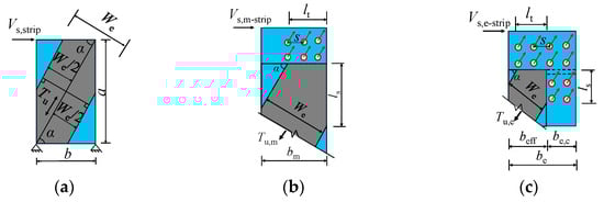 - An analytical model for the shear capacity of profiled steel sheets connected by self-tapping screws in DPSCWs was developed based on the effective strip method, with the error between the calculated and experimental results within 12%.