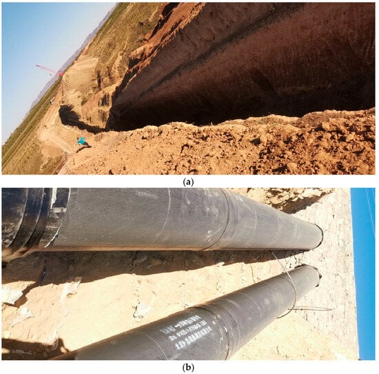 Thermal trench construction site; (a) trench; (b) pipeline.
