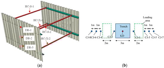 - Case F4: Under this condition, an 80 kPa load was applied asymmetrically to one side of the trench, leading to deformations of 3.0 mm, 3.0 mm, 2.0 mm, and 2.0 mm at HC-X-1, HC-X-2, HC-S-1, and HC-S-2, respectively. When the same load was applied symmetrically to both sides, the deformations increased to 6.0 mm, 7.0 mm, 4.0 mm, and 4.0 mm, respectively.