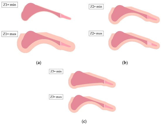 Geometrical parameters defined for optimization: (a) parameter Z1; (b) parameter Z2; (c) parameter Z3.