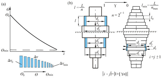 dj’). The fixed column volume criterion is met thanks to the unchanged lengths of the segments. New values of the diameters of egments are described by the formulas
