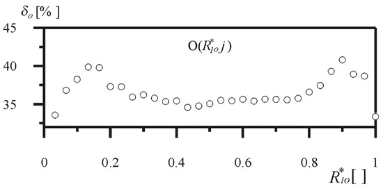 Figure 7a,b show the results of the numerical computation of the variability of the natural frequencies of the O(