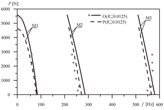 In this section, the numerical computation results, in accordance with the adopted energetic and vibrations methods, and the experimental results, are presented. In the selected case of a Tomski’s load, with selected values of the geometrical parameters of the loading and receiving head radiuses R1o*, appropriate results from theoretical and numerical studies are shown.