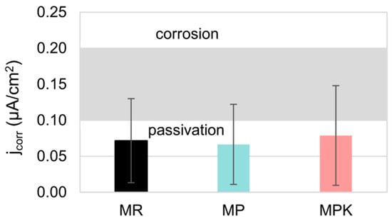 where CR—corrosion rate (mm·year−1) and jcor—corrosion current density (μA·cm−2).