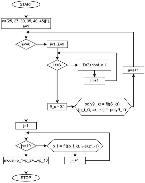 Figure 6 shows a flow chart of the numerical model used independently for the S and SJ samples. The following are defined: fit() is defined as a fit function using regression; conf_α_i represents the data on a sample