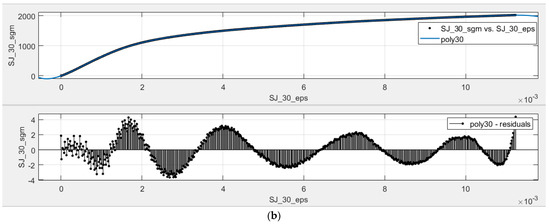 Figure 9 shows oscillating behavior when analyzing the residuals between the poly9 model and the experimental data. On the one hand, this oscillating behavior suggests that there are additional considerations that were not accounted for in the poly9 model. On the other hand, these oscillations may be due to Runge’s phenomenon [