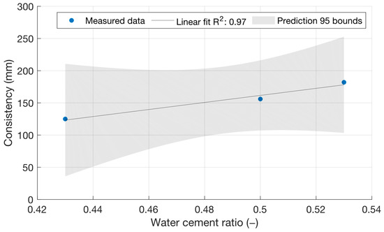Consistencies of reference fresh mortars with different water/cement ratios.