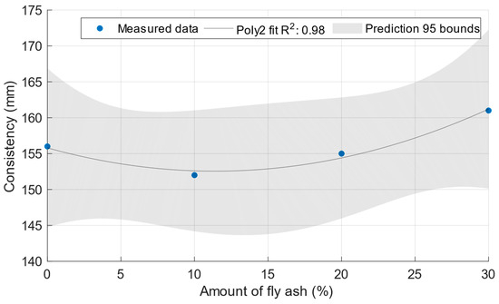 Consistencies of fresh mortars with the fly ash Opatovice.