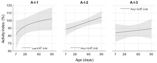 Based on the obtained compressive strength results, an activity index was determined according to EN 450-1 [19]. Furthermore, based on the relationship between the water/cement ratio and the compressive strength, k-values for compressive strength were determined for each age and replacement of cement with fly ash.