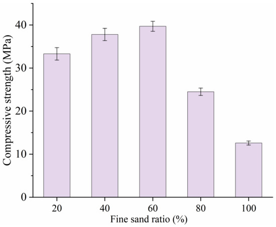 Compressive strength of SF-HPC with different fine sand replacement ratios.
