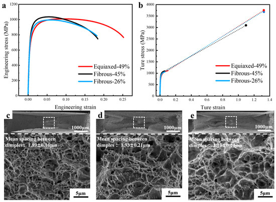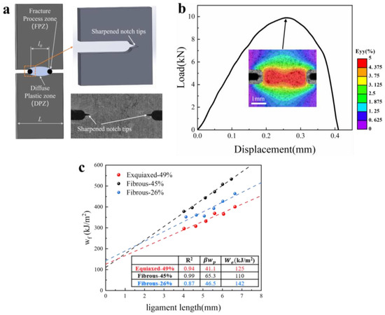 - Under uniaxial tension, the fibrous morphology does not improve the fracture strain. But under DENT tension, the measurements of EWF show that Fibrous-45% and Equiaxed-49% have similar fracture resistance, and the Fibrous-26% presents the highest value of we. The superior we of Fibrous-26% is presumably attributed to the larger energy dissipation by crack tip necking.