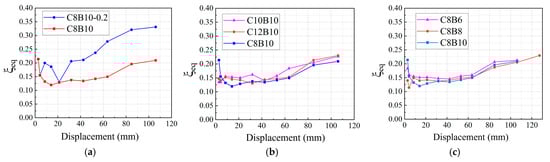 - The stable secondary stiffness of SFCBs provides continuous bearing capacity during the joint plastic stage, delays stiffness degradation, and improves the equivalent viscous damping coefficient of the specimen. For instance, C8B8 still maintains high energy dissipation capacity after failure.