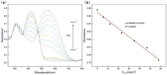 As an alternative to traditional methods, photochemical methods for the detection of HCl have the advantages of high sensitivity, good selectivity and short response time [7]. Currently, photochemical methods for quantitative detection of pollutants mainly include fluorescence spectrometry [8] and ultraviolet-visible absorption spectrometry [9]. Visual colorimetry has the advantage of easy operation, but usually its test accuracy is low. Currently, visual colorimetry is usually used for the detection of solutions [10], and the quantitative detection of HCl gas by this method has rarely been reported. Comparing these three methods, fluorescence detection and UV-Vis absorption detection are highly sensitive and accurate, while visual colorimetry is the simplest and lowest-cost method.