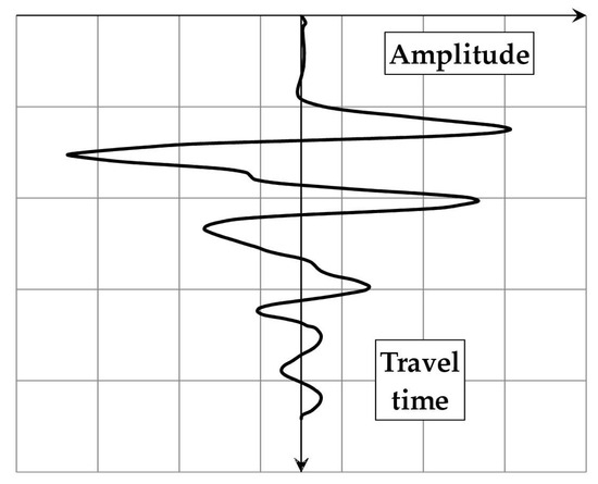 The amplitude–time graph presented in Figure 3 is, however, of limited use when attempting to locate the detected object. Therefore, for practical purposes, the time scale is transformed into a depth scale, according to the following formula: