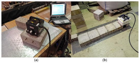 Scanning of concrete samples using GPR: (a) 2 GHz antenna, (b) 900 MHz antenna.