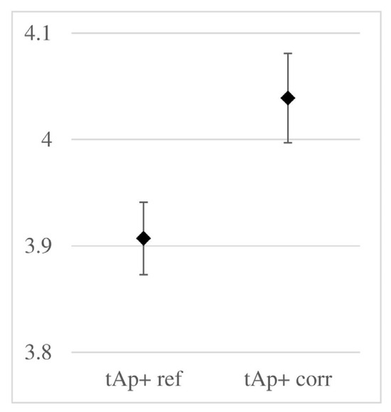 In order to assess the properties of the wave propagating through the entire cross-section of the sample, the parameters of the wave reflected from the metal plate placed under the sample (amplitude Ap+ and propagation time tAp+) were additionally analyzed. Surprisingly, in the corroded samples, the amplitude value (2.634 V) was slightly higher than in the reference samples (2.609 V). Although this phenomenon can be linked to changes in the concrete structure due to cyclic freezing and thawing, in the authors’ opinion, the increase in the average value of the amplitude is only the effect of the random nature of the local properties of concrete before the development of corrosion. The difference in the values of Ap+ in non-corroded and corroded samples is only 0.025 V and is an order of magnitude smaller than the standard deviation (compare Table 2). It seems, therefore, that the increase in the average value of Ap+ in corroded samples is only a statistical effect.