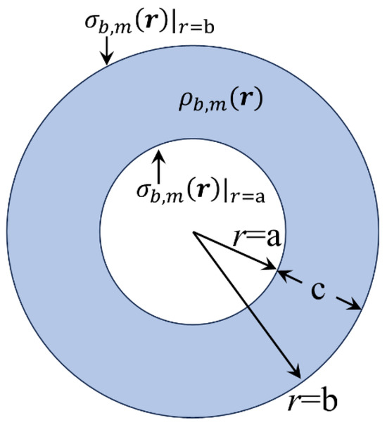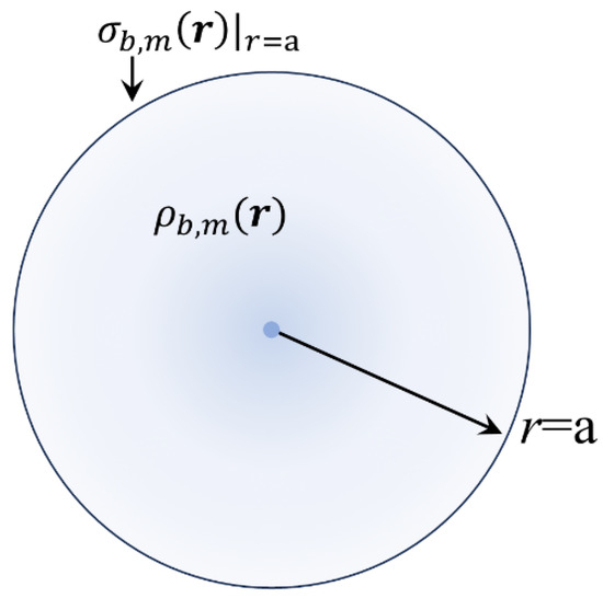 First, relation (14) satisfies the continuity of the scalar potential at the two spherical interfaces, and . Indeed, when the multipole moments of relation (12) are zero, while in the calculation of the multipole moments with relation (11), the radial integration extends in the entire range, from to . Thus, we easily see that relation (11) retains its original form, relation (8), and relation (14) is identical to relation (7), so that . Similarly, when the multipole moments of relation (11) are zero, while now in the calculation of the multipole moments with relation (12), the radial integration extends in the entire range, from to . Thus, we easily see that now relation (12) retains its original form, relation (10), and relation (14) is identical to relation (9), so that .