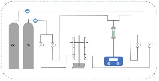 Flow chart of CO2 adsorption penetration experiment device.