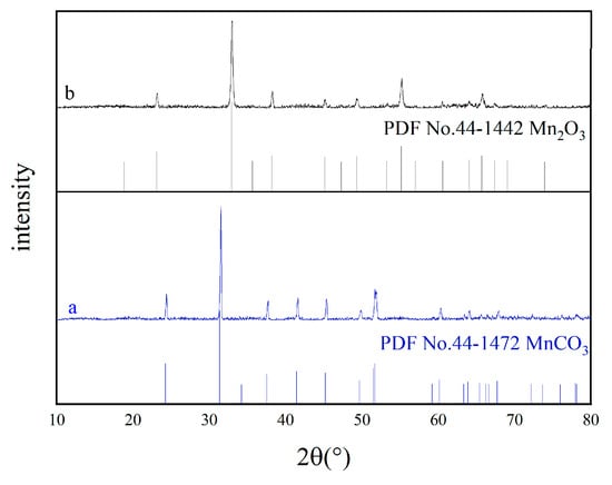 XRD patterns of (a) MnCO3/C and (b) Mn2O3.