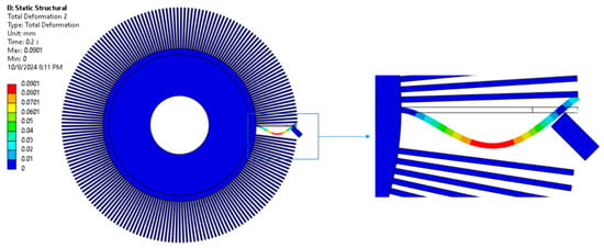 Thanks to the numerical model, which has been verified by a series of tests, it is possible to continue work on the optimization of the brushing process in the Ansys Workbench environment. By performing numerical simulations based on the finite element method, the execution time and costs of tests will be significantly reduced. As further areas in which solutions should be sought that have a positive impact on the extension of the brush life, it is necessary to indicate work aimed at investigating the increase in bristle thickness for the length of the tool life, or modification of the material from which the bristles are made and verification of the tool life. While a satisfactory correlation has been achieved between the industrial and numerical simulation results, there is still room for further refinement. The authors are planning to enhance the accuracy of the numerical model by developing a digital twin of the deburring process. This model will incorporate the evaluation of temperature and other environmental factors to improve the correlation between the results. The authors place the greatest hope for improving the accuracy of the numerical model and correlation with industrial tests in examining the process temperature. The temperature to which the tool is heated is estimated to be about several dozen degrees Celsius, whereas the temperature of the workpiece is much lower. The temperature of the workpiece during the deburring process is assumed as so low that there is no impact on the microstructure of the workpiece, hence there is no impact on material properties, and thus there is no need to be controlled. However, the temperature of the working tool may lead to changing the stiffness of the bristles and thus have an impact on the numerical model accuracy. In further work, it also seems interesting to examine the bristles from the point of view of breakage and fatigue [42,43].