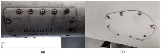 Fragments of aircraft skin: (a) Iskra, (b) PZL M-20 “Mewa”.