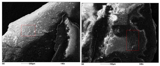 Microscopic images of the materials obtained using the SE (secondary electrons) detector are shown below in Figure 3 and Figure 4.