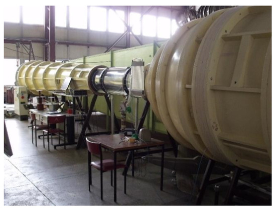 The tests were conducted in the TA500 wind tunnel (Figure 9) with a diameter of 500 mm, operating in both open and closed measurement space configurations, utilizing a columnar aerodynamic balance and the Daqbook 2001 (IOTECH, Norton, MA, USA) measurement system with DasyLab software 2020.