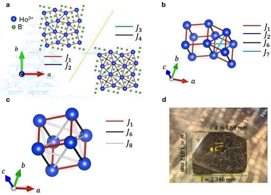 Due to the large magnetic moment of Ho3+, dipole–dipole interaction is an important part of the overall interactions between spin sites. We extract the initial parameters of the magnetic Hamiltonian in Equation (2) from the interionic distances of Ho3+ (Table 2) using the inverse cubic nature of magnetic dipole–dipole interaction: