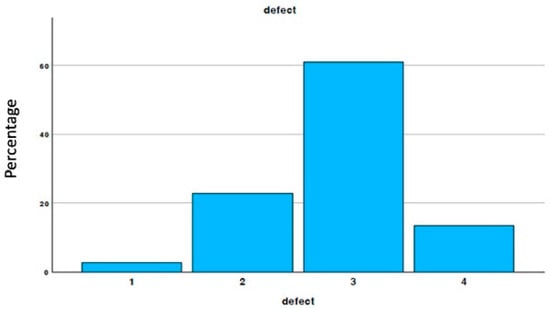 The defects were classified as one-wall defects, two-wall defects, three-wall defects, and four-wall defects, as shown in Figure 2. Of these, 50% were three-wall defects.